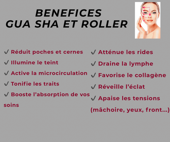 Le Gua Sha décongestionne, le Roller stimule le flux sanguin et lymphatique : résultat, un regard plus frais, les cernes estompés et les traits visiblement reposés dès les premières utilisations.