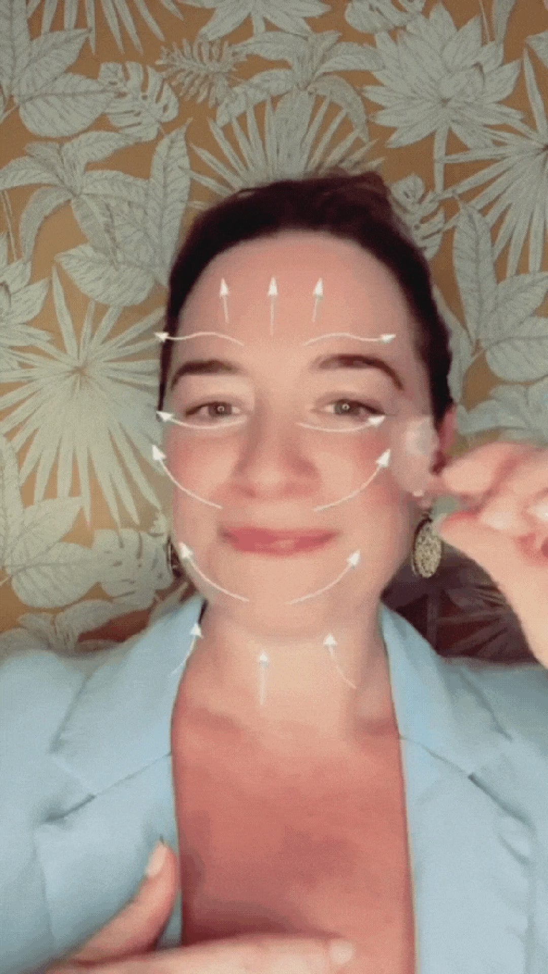 Les mouvements doivent aller du bas vers le haut, et de l’intérieur vers l’extérieur du visage, pour accompagner naturellement le drainage lymphatique.